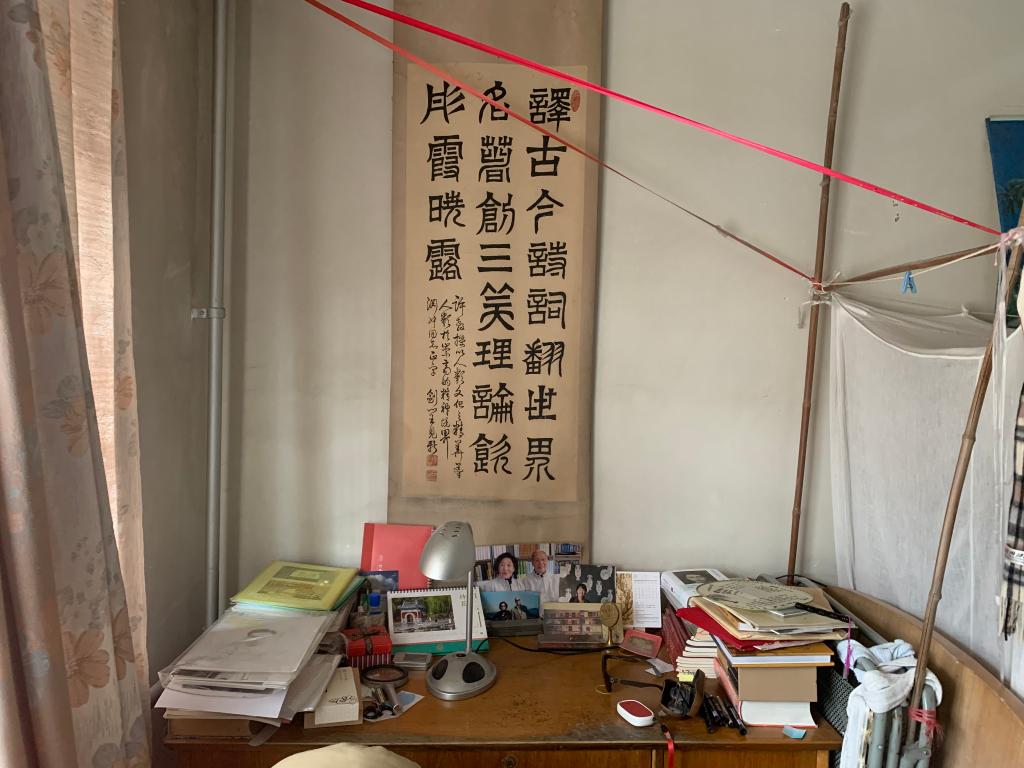 许老书桌上挂着的这幅隶书,成为他一生写照。