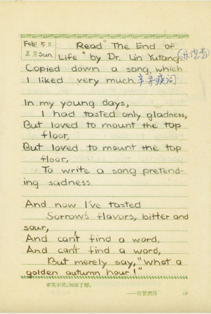 新出版的《西南联大求学日记》封面上,印着他当年在日记中写下的句子。