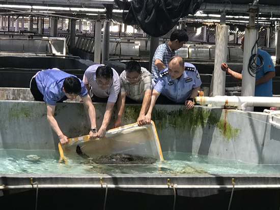 江苏省人民检察院把这个案子上报到最高检,最高检下达函件,要求涉案地的检察院配合徐州铁路运输检察院,把海龟运输到海南。