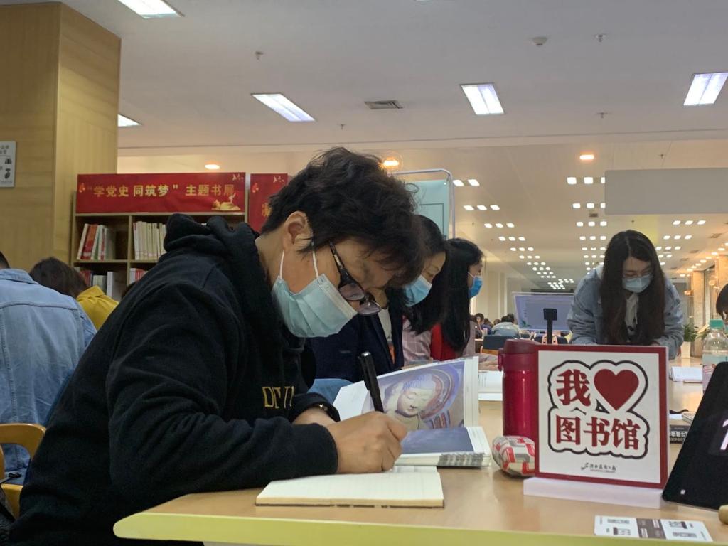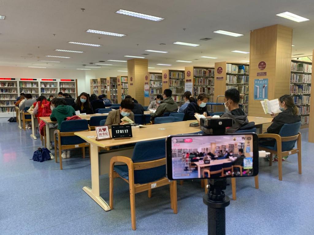 陕西省图书馆举办读书“慢直播”活动。(新华社记者 蔡馨逸摄)