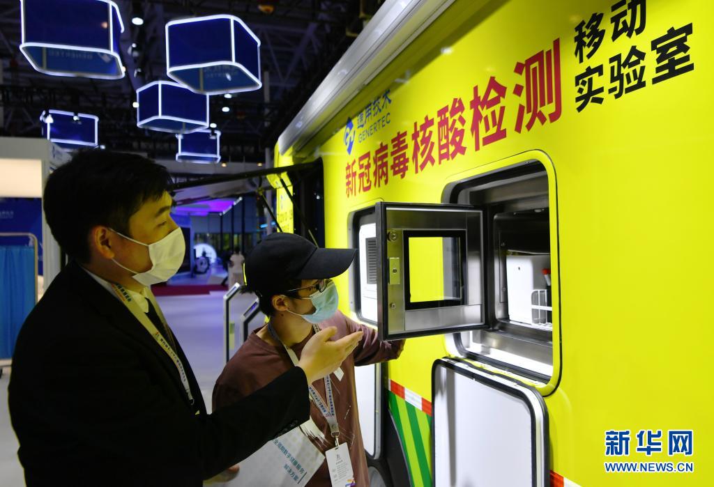 4月25日,在第四届数字中国建设峰会数字成果展览会上,一家高科技公司在展示新冠病毒核酸检测移动实验室。新华社记者 魏培全 摄