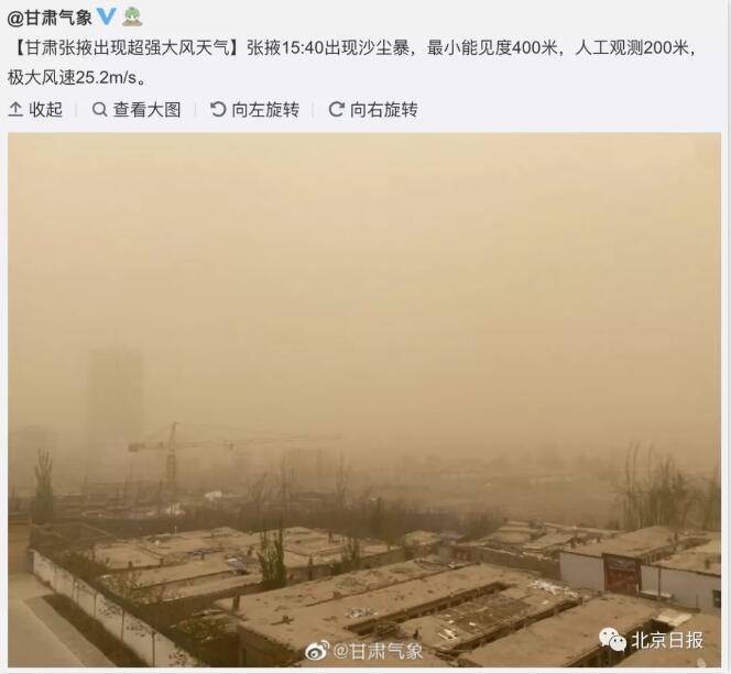 张掖市出现沙尘暴天气