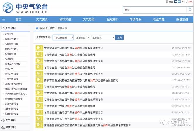 发布沙尘暴黄色预警信号