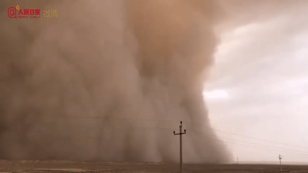 近百米高沙尘墙吞噬城镇