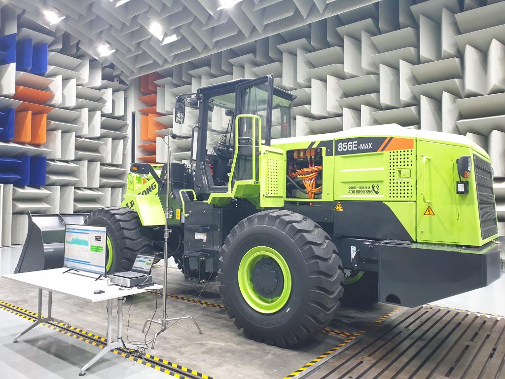 在柳工的NVH实验室,一辆大型纯电动装载机正在进行测试。 新华社记者 黄浩铭 摄