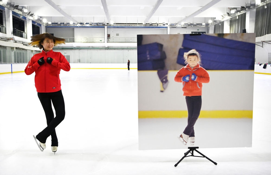 看着自己幼年时练习花滑的照片