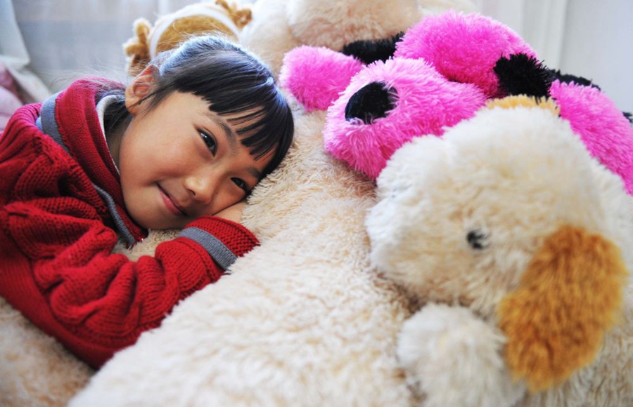 △ 甜甜和她的玩具狗在一起(2009年11月1日摄)。