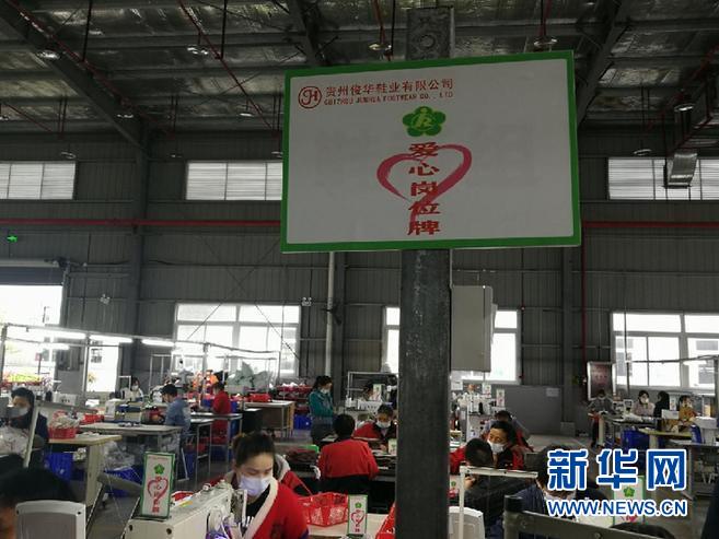 在生产车间,有的操作台前设置了爱心岗位牌,这意味着该岗位工作人员是残疾员工。记者了解到,为助力残疾人就业,习水县骏华扶贫产业园专门开辟爱心生产线2条,现已安置残疾人123人。