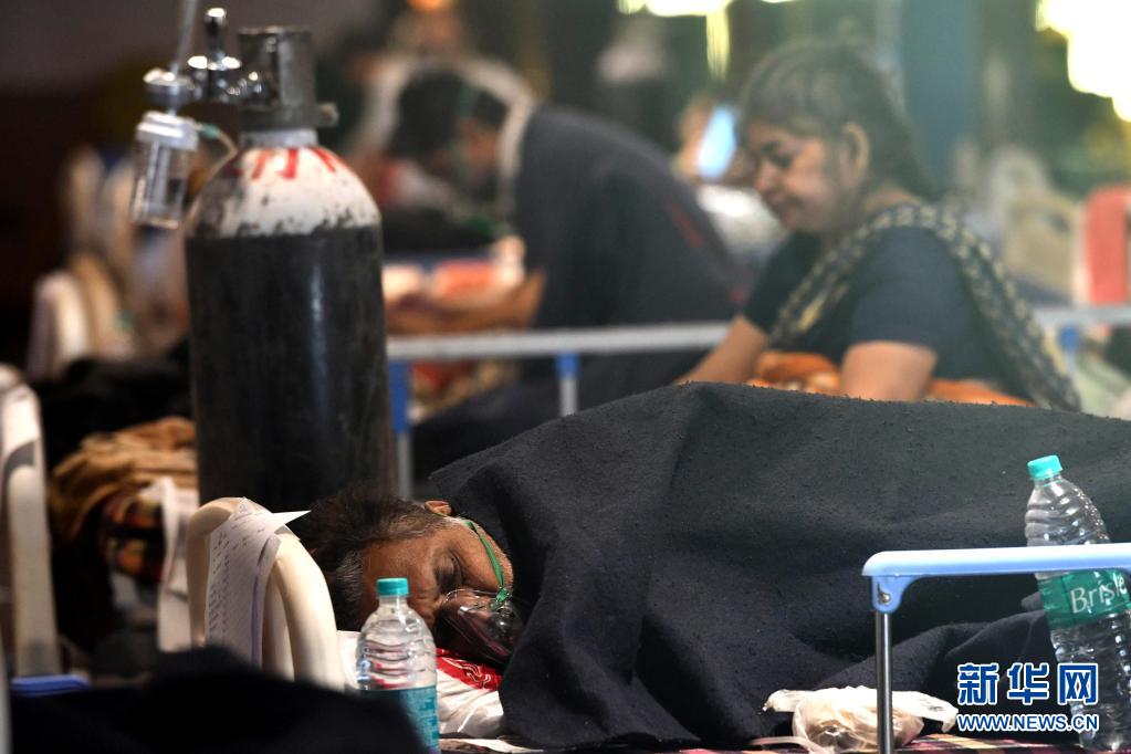 4月29日,一名患者躺在印度新德里一处新冠治疗中心的床上。新华社发(帕塔·萨卡尔摄)