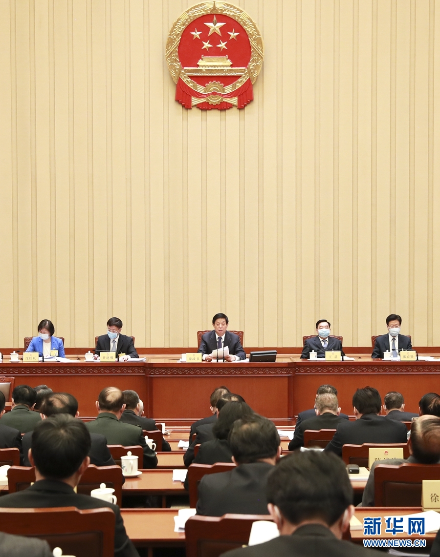 4月29日,全国人大常委会委员长栗战书在北京主持十三届全国人大常委会第二十八次会议闭幕会并讲话。新华社记者 庞兴雷 摄