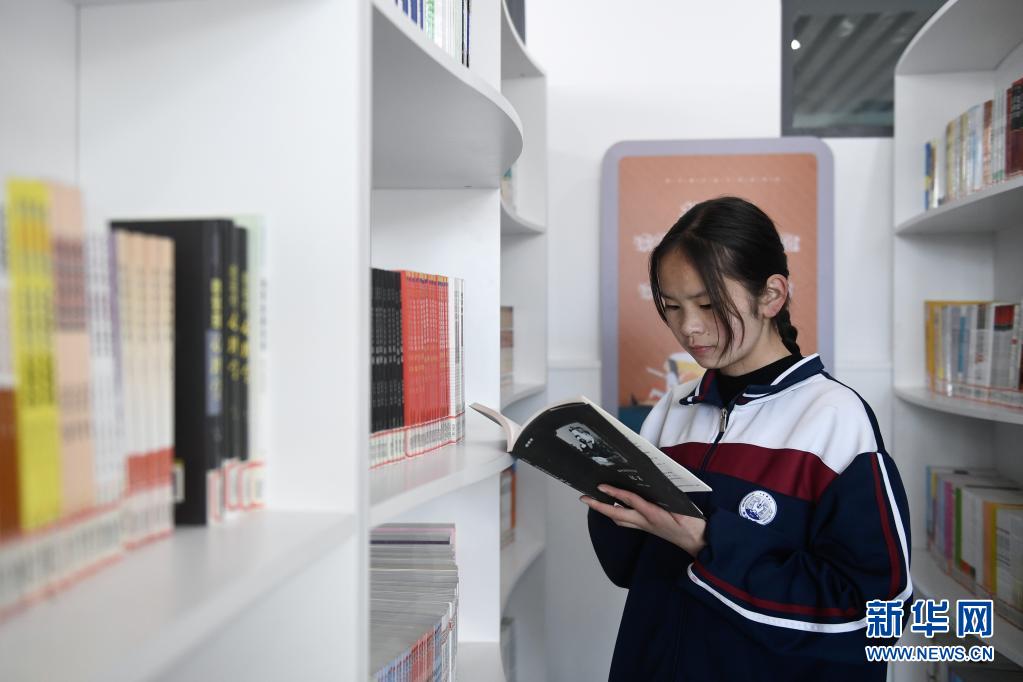 4月28日,在(西宁)果洛中学,周毛在图书馆读书。新华社记者 张龙 摄