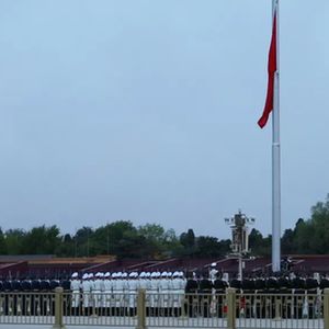 伴随着清晨的第一缕阳光,踏着铿锵有力的步伐,国旗护卫队队员从金水桥畔走出,将五星红旗在天安门广场升起。