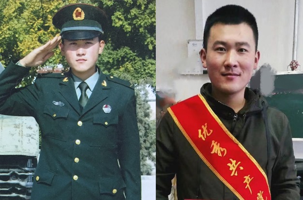 左图为在军营时的吴炳辰,右图是在双湖县工作后的他。(拼版照片,受访者提供)