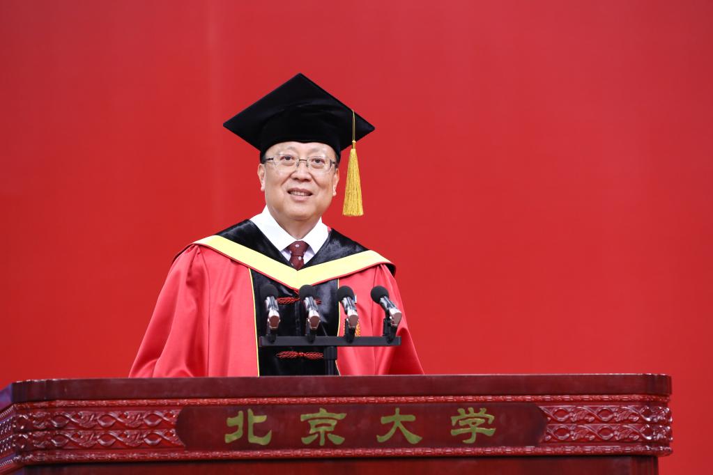 “作为‘五四’运动的策源地和我们党最早的活动基地,北京大学百余年来始终与国家和民族的命运紧密相连,北大人始终挺立在民族复兴和国家发展的潮头。”他说,“爱国、进步、民主、科学”的五四精神,已成为北大最鲜亮的底色,是北大人奋发有为、勇立新功的不竭动力。