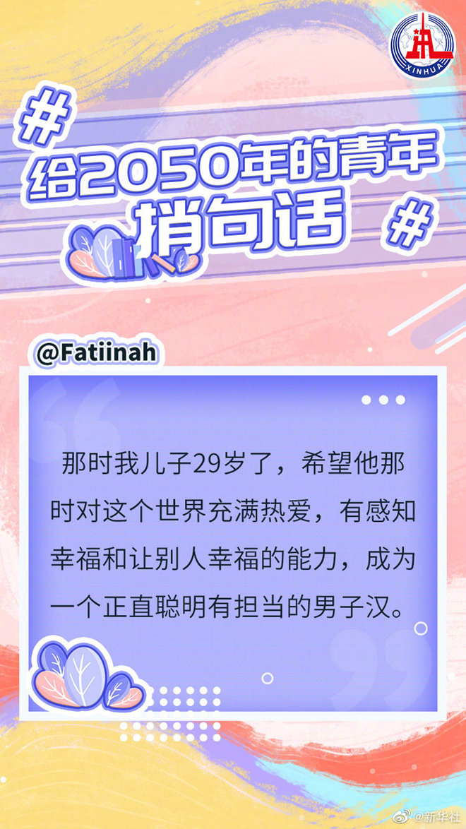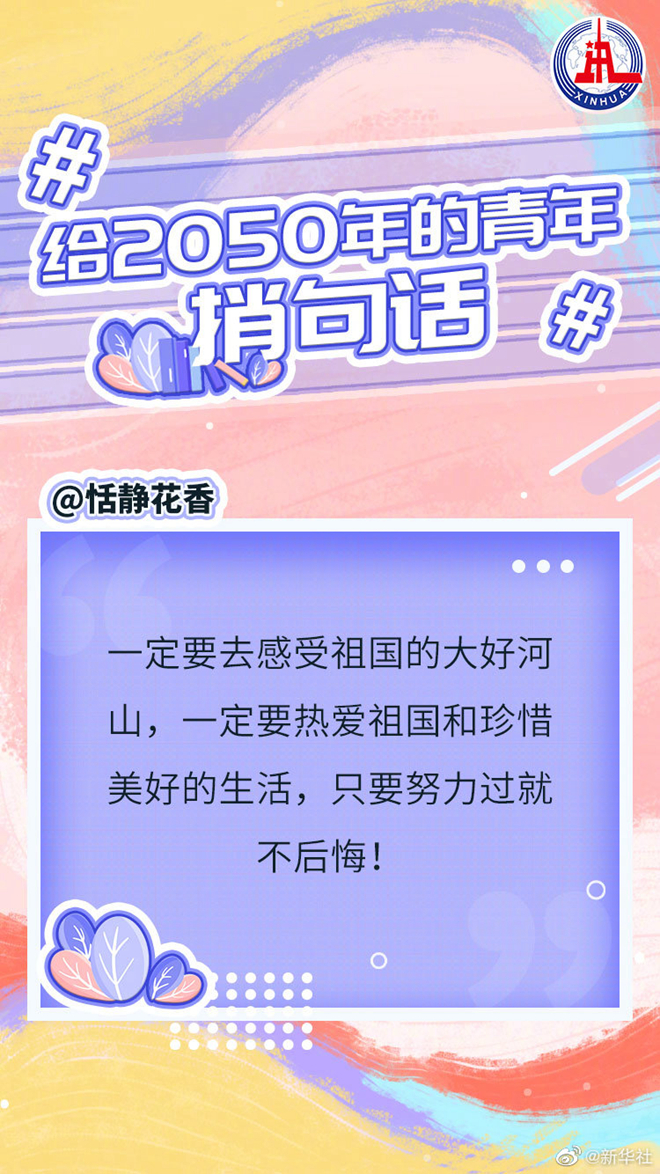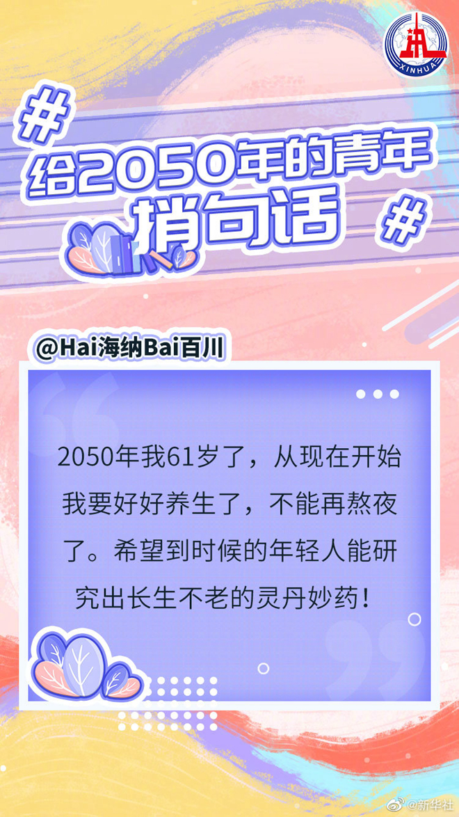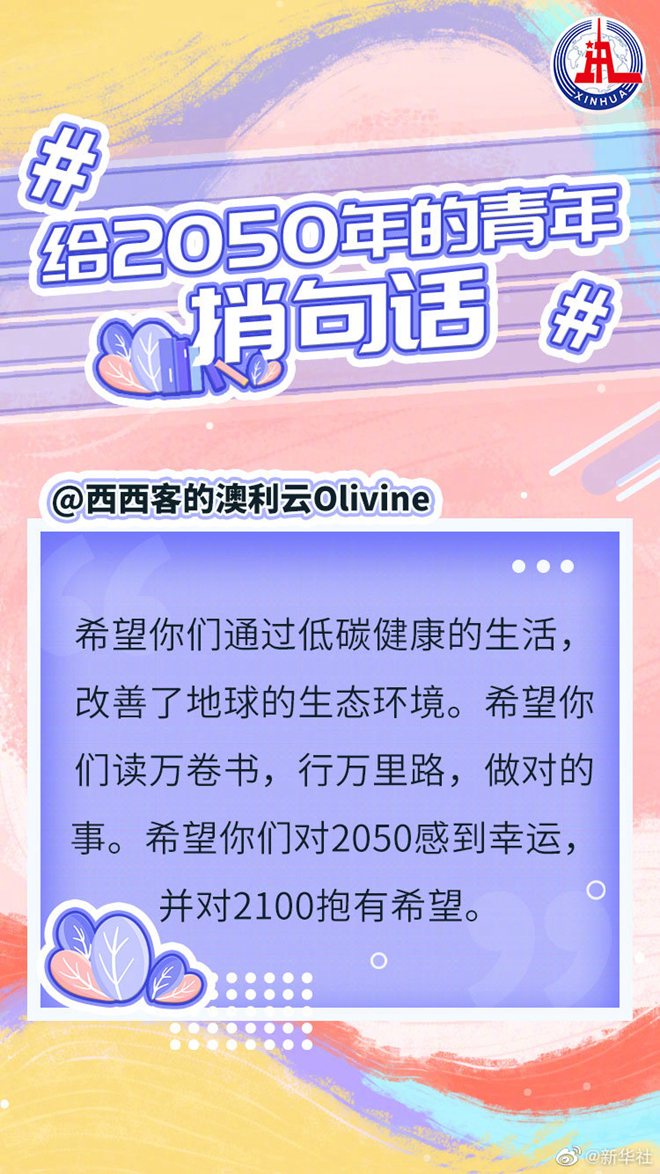 2050年,你会在哪里,做些什么? 我们发起给2050年的青年捎句话活动后,广大网友积极参与,金句频出。一起来看看网友们对于未来的想象吧!