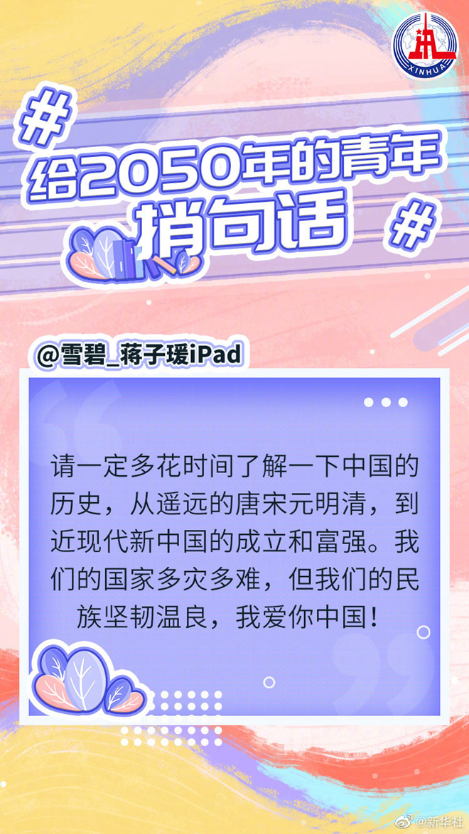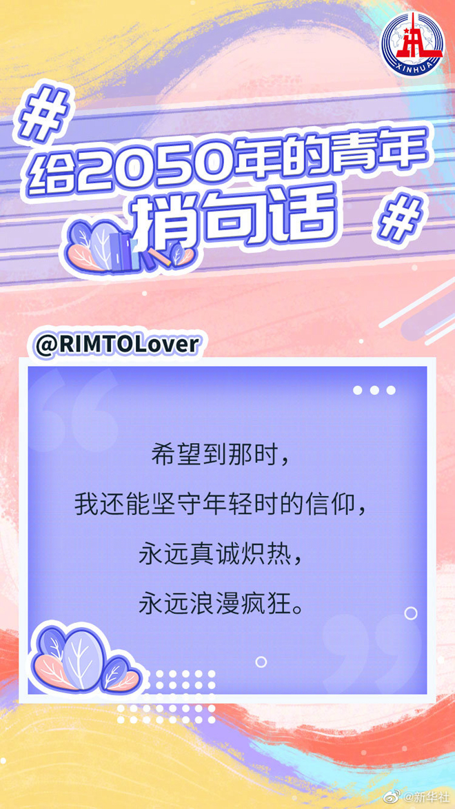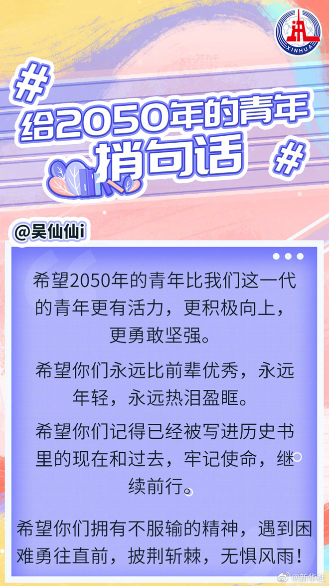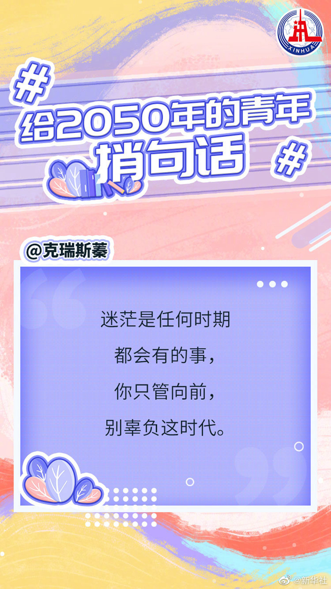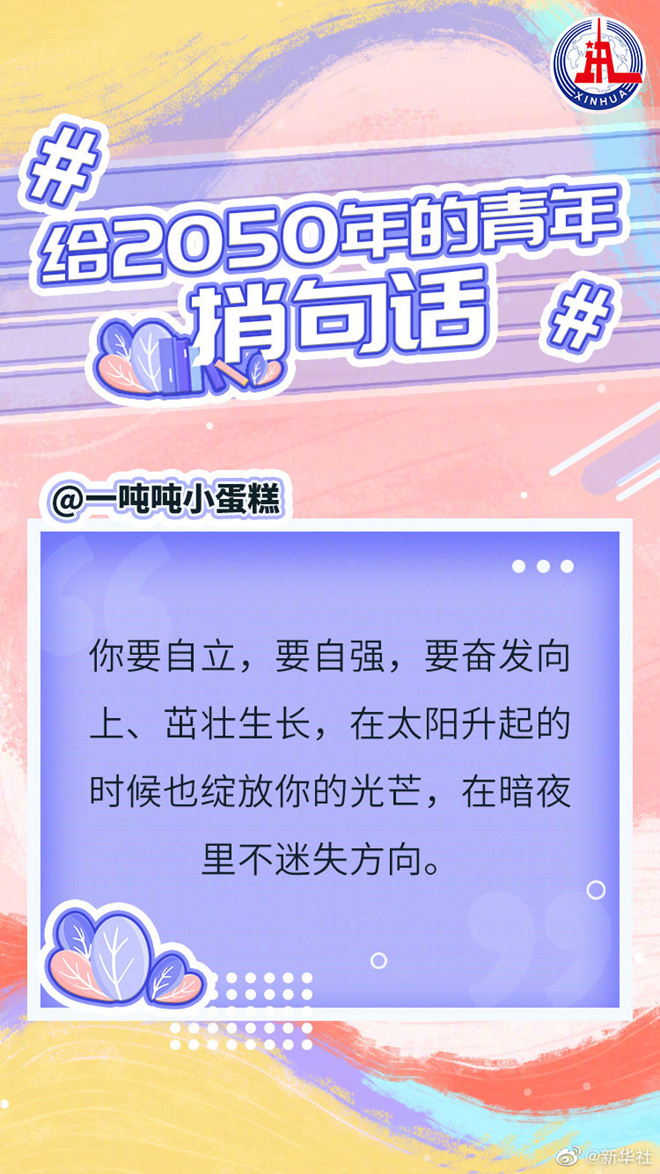 2050年,你会在哪里,做些什么? 我们发起给2050年的青年捎句话活动后,广大网友积极参与,金句频出。一起来看看网友们对于未来的想象吧!