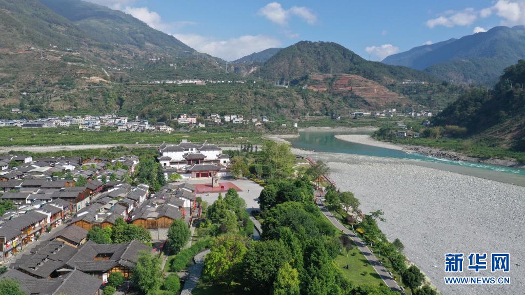 这是4月29日拍摄的四川雅安市石棉县安顺场镇中国工农红军强渡大渡河纪念馆(无人机照片)。新华社记者 王曦 摄