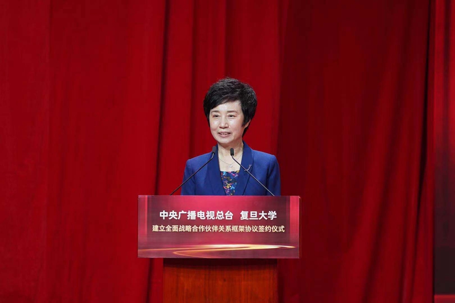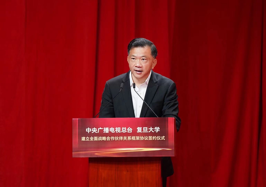 慎海雄强调,与复旦大学建立全面战略合作伙伴关系,也是中央广播电视总台首次与高校开展全面战略合作。作为党的意识形态重镇和国家广播电视台,总台将发挥中央主流媒体融合传播实践优势、独家视音频资源优势、多语种全媒体矩阵平台优势等,为复旦大学布局新时代的教学科研、师资和人才培养、文化传承创新、社会服务等贡献力量,为广大学子提供学思践悟的广阔舞台。