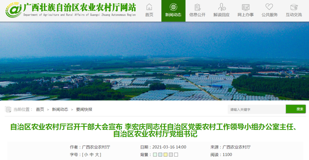 此前,李宏庆同志任自治区党委农村工作领导小组办公室主任、自治区农业农村厅党组书记。