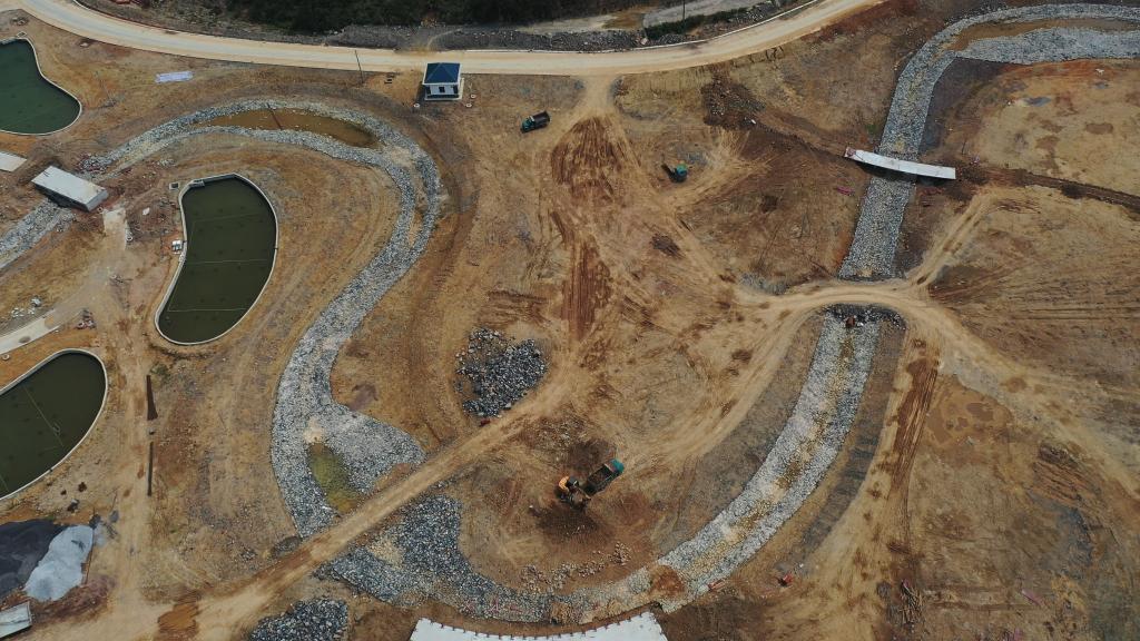 工程建设方通过探索建设生态鱼道,积极保护鱼类生存栖息环境。目前副坝仿自然生态鱼道已经建成,主坝鱼道基础部分施工基本完成。