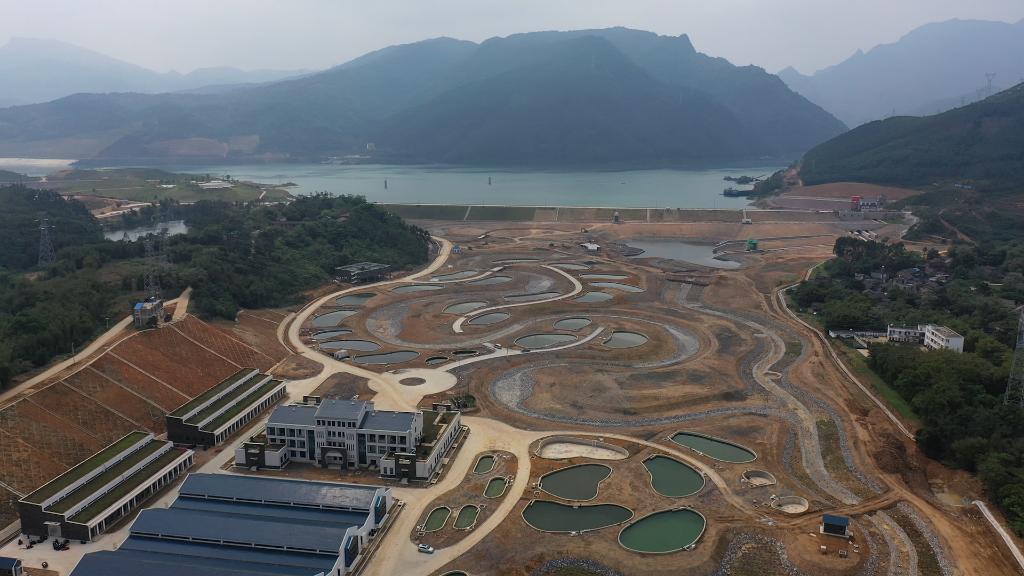 这是大藤峡水利枢纽来宾市红水河珍稀鱼类增殖保护站航拍图。新华社记者农冠斌 摄