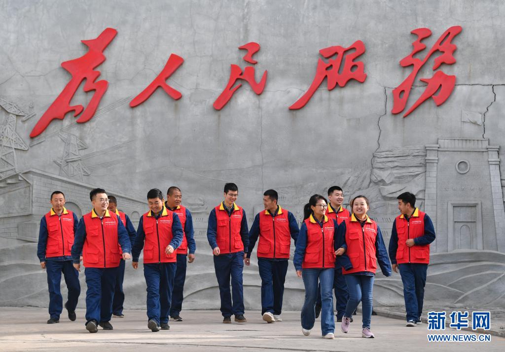 3月30日,国网延安供电公司枣园供电所张思德服务队队员结束集体学习活动后走向工作岗位。新华社记者 张博文 摄