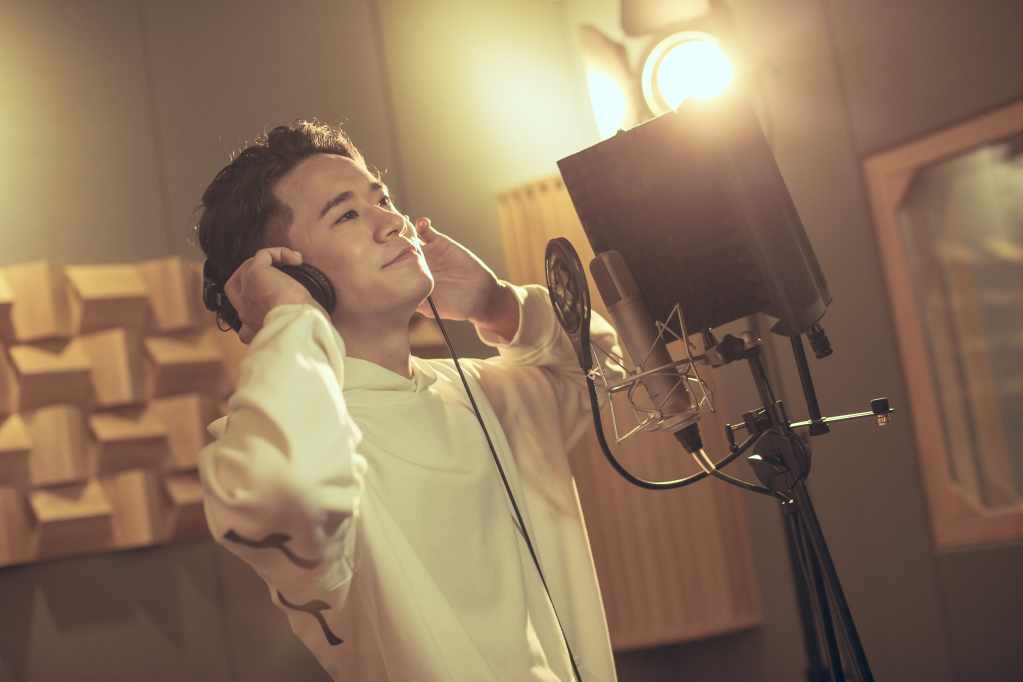 巴邓顿珠在录音棚录制歌曲。新华社发 (受采访者供图)