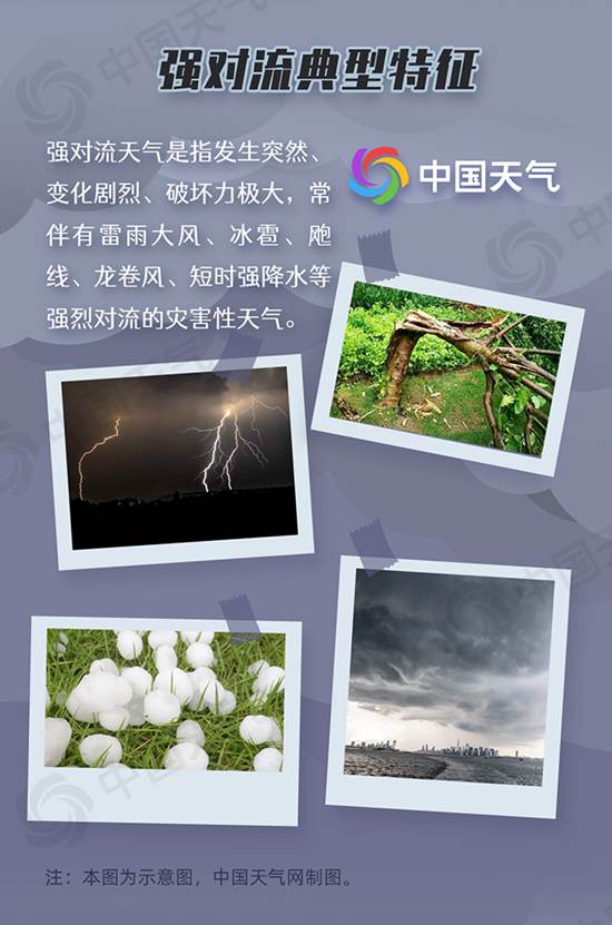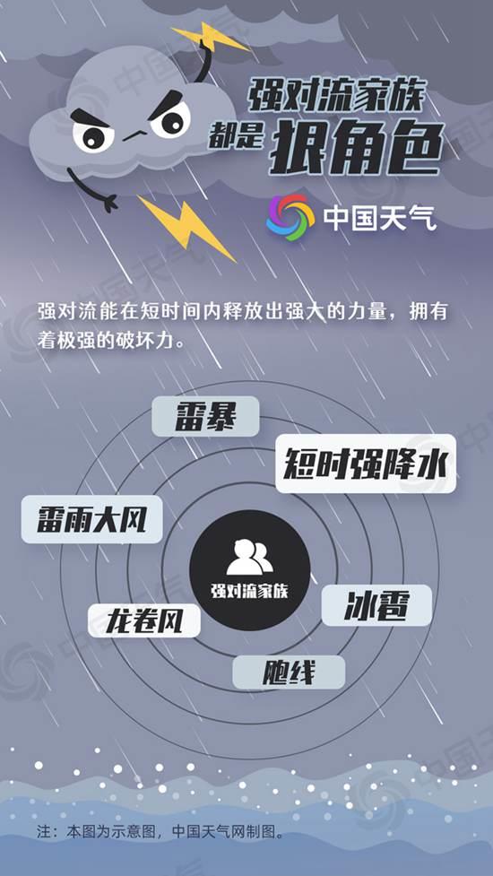 强对流天气,是指发生突然、天气变化剧烈、破坏力极大,常伴有雷雨大风、冰雹、飑线、龙卷风、短时强降水等强烈对流的灾害性天气,是具有较强杀伤性的灾害性天气之一。