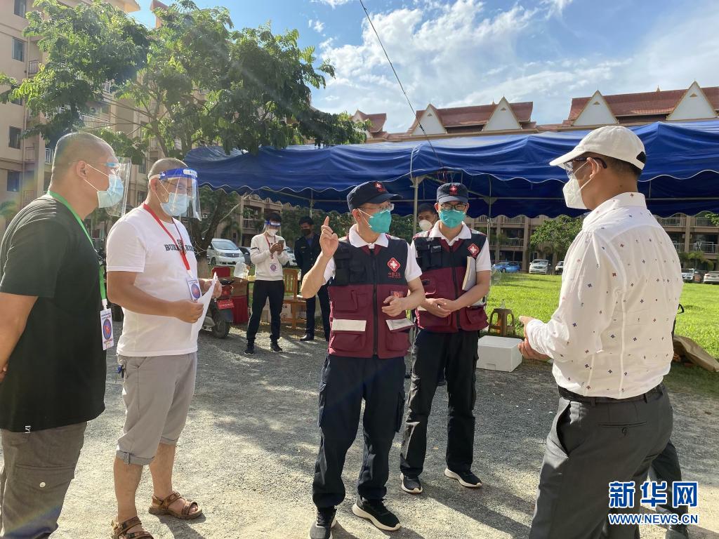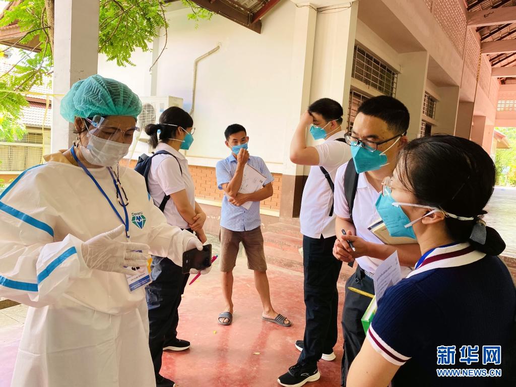 5月12日,中国抗疫专家组在老挝北部博胶省调研密接和确诊新冠病例隔离点。新华社发(农丽春摄)