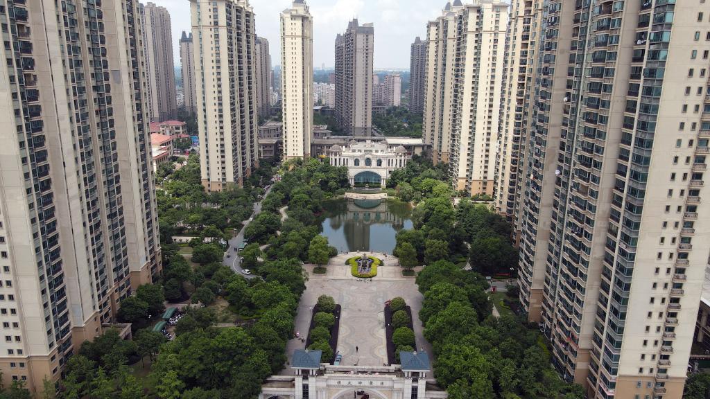 5月17日拍摄的进行封闭管控的六安市裕安区恒大御景湾小区(无人机照片)。新华社记者周牧 摄