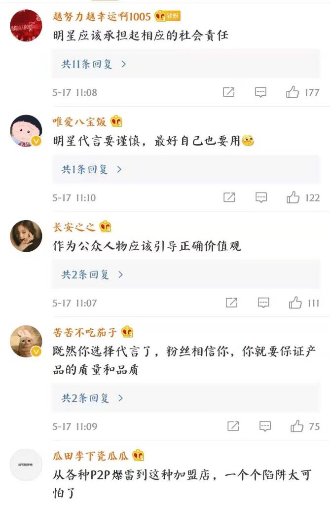 “代言时诱惑太高,出事后代价太小。”有网友在社交平台评论称,“明星‘任性’代言的代价,最终是由普通消费者买单,实在不该。”