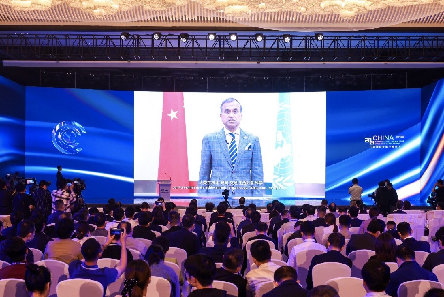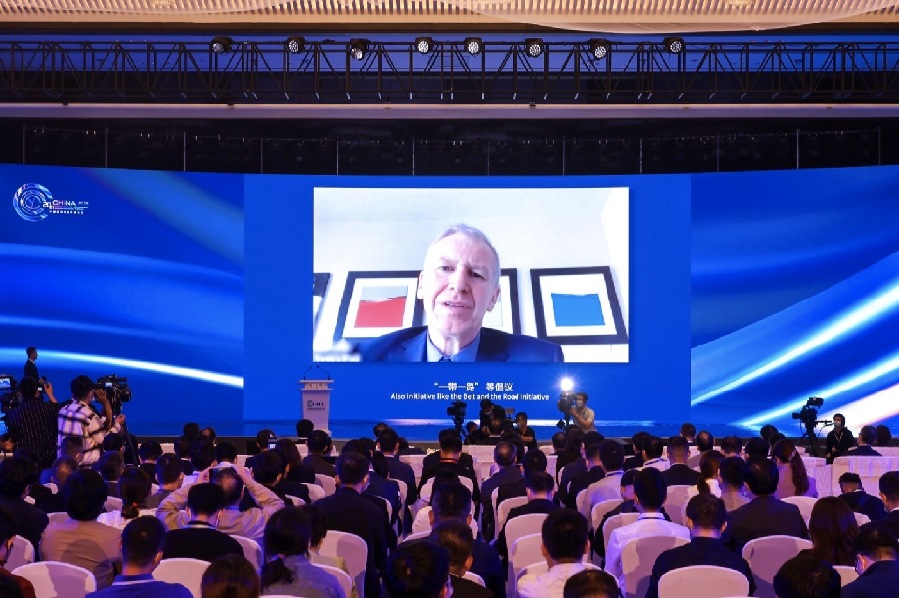 无锡市委书记黄钦,比利时前首相伊夫·莱特姆,联合国系统驻华协调员常启德,新华社党组成员、秘书长宫喜祥,中国移动通信集团有限公司副总经理简勤在开幕式致辞。