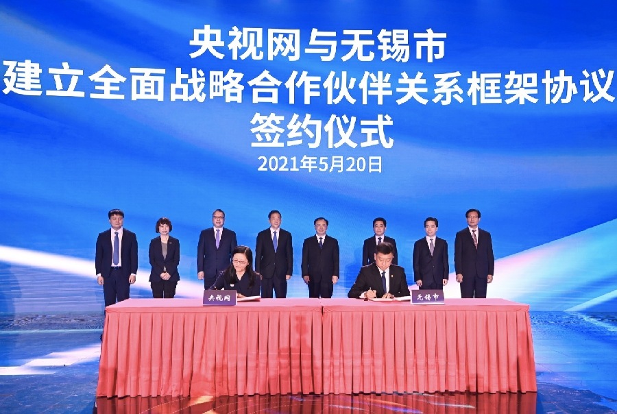 与会嘉宾还一同见证了中央广播电视总台央视网与江苏省无锡市签署战略合作框架协议。