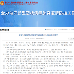 截至5月20日24时新型冠状病毒肺炎疫情最新情况