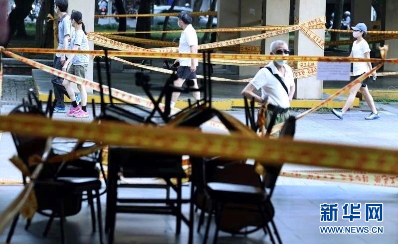 新北公园内民众可能群聚区域,拉起封锁线暂停开放。图片来源于台媒