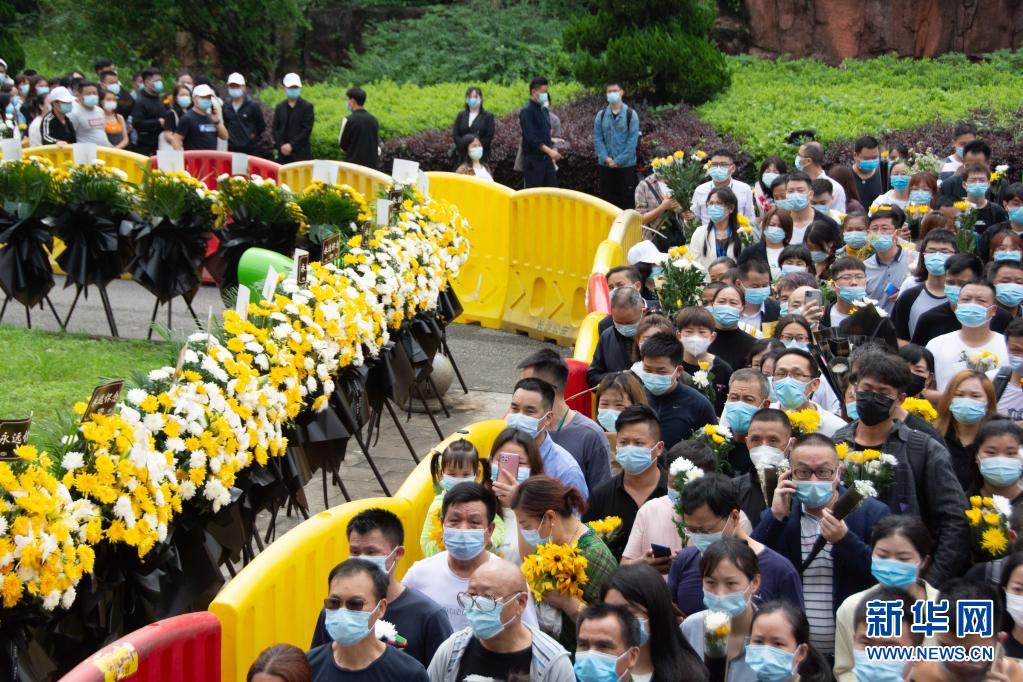 从凌晨起,人们就在长沙市明阳山殡仪馆门前排队等待送别。10点钟送别仪式开始时,队伍延伸约3公里。