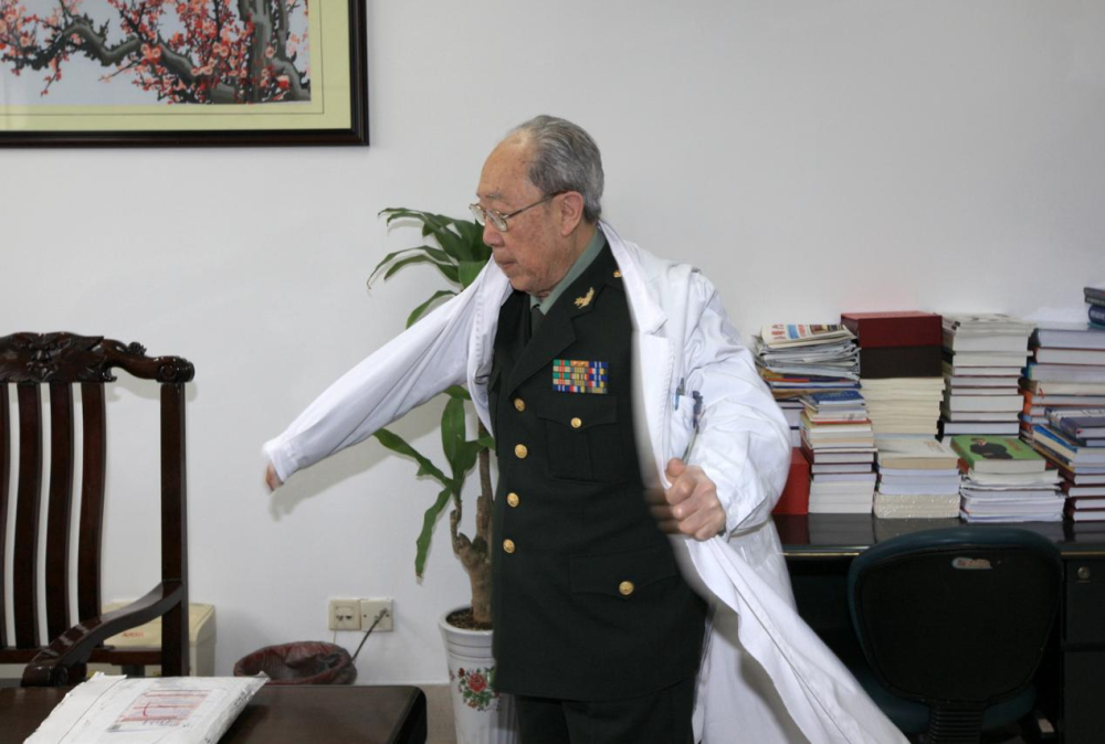 ↑吴孟超穿上白大褂,进入工作状态。他每天八点准时来到医院。王建民摄