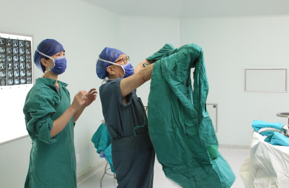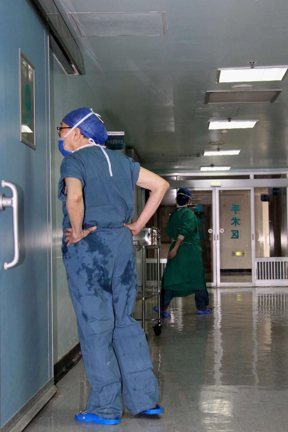 ↑换上手术服,准备进入手术室,主刀第一台手术。王建民摄