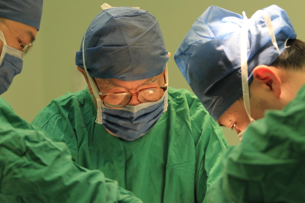 ↑吴孟超主刀肝脏肿瘤切除手术。每周主刀5-8台手术,是他自己给自己的规定。王建民摄