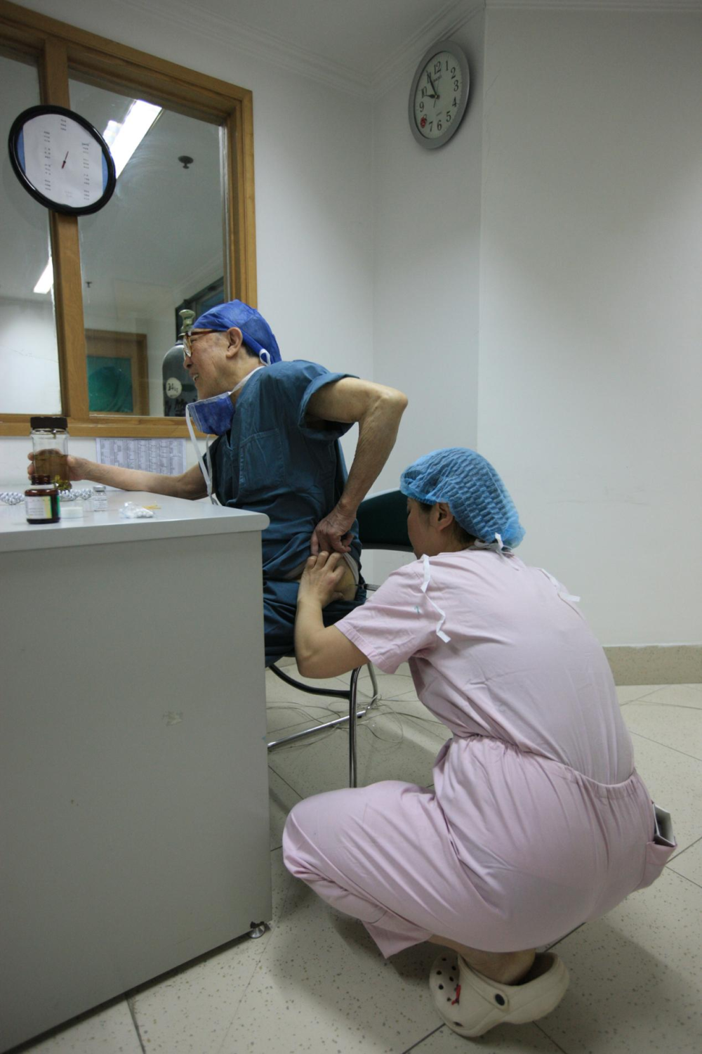 ↑走出手术室,吴老明显很疲惫,毕竟是89岁的老人。王建民摄