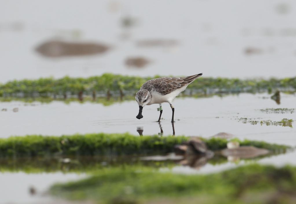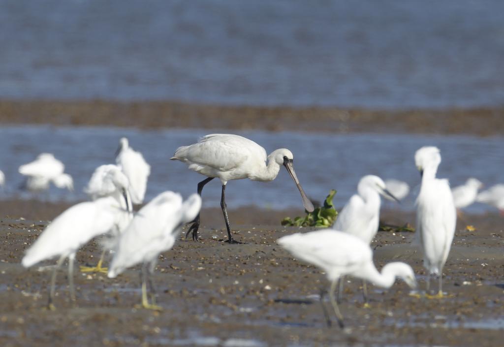 图为勺嘴鹬在水边泥地里活动。(唐上波 摄)