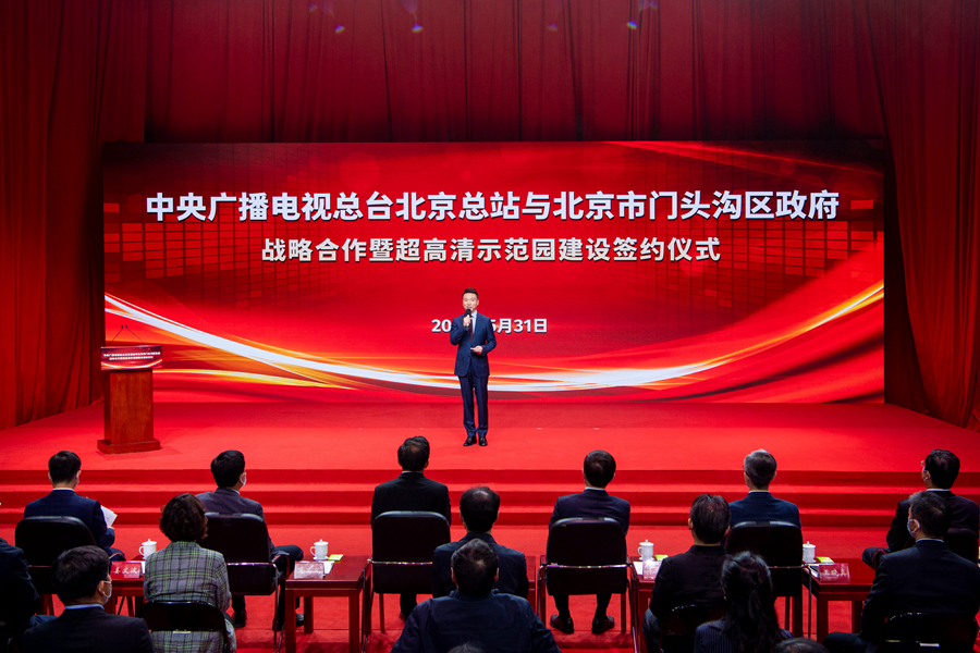 5月31日,中央广播电视总台北京总站和北京市门头沟区政府签订战略合作协议,中央广播电视总台超高清示范园落户北京市门头沟区。中宣部副部长、中央广播电视总台台长兼总编辑慎海雄出席活动。