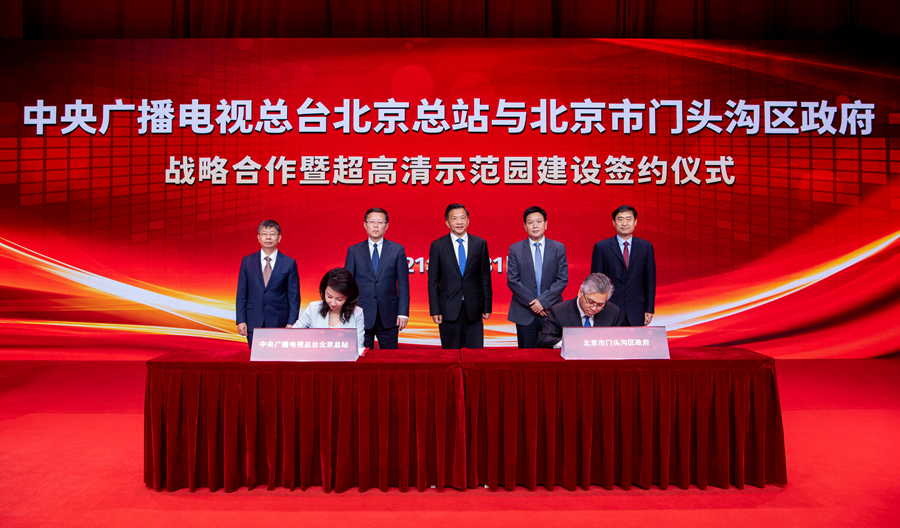 总台北京总站和北京市门头沟区相关负责人签署了《中央广播电视总台北京总站 北京市门头沟区战略合作协议》。