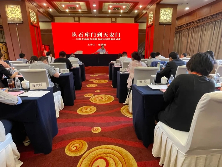 上海红色文化研究院执行院长、中共一大会址纪念馆原馆长张黎明为大家上党史学习教育课。