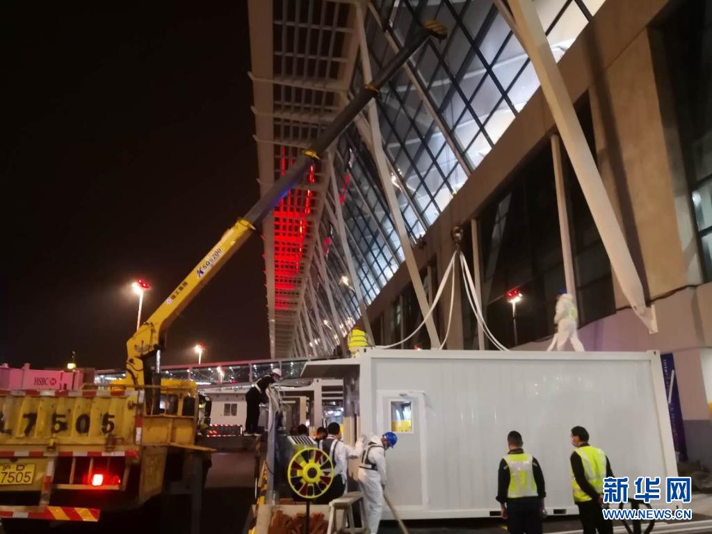 正在建设中的上海浦东国际机场海关方舱(2020年5月11日摄)。新华社发(陈兴洲 摄)