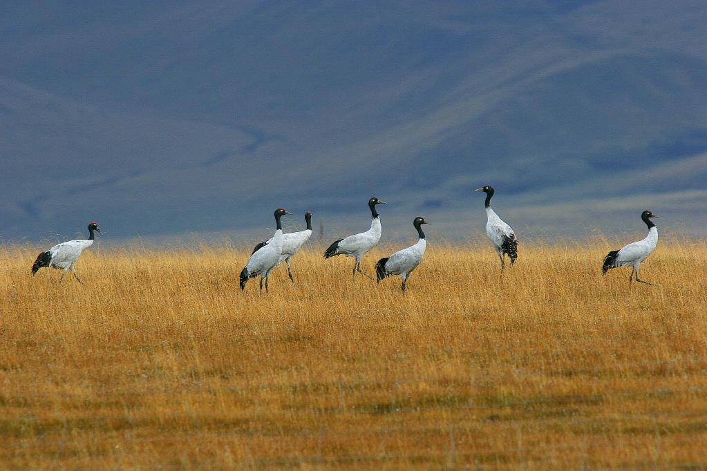 眼下,正是国家一级保护动物黑颈鹤的繁殖季节。脖颈修长、体态优雅的黑颈鹤,是全球唯一能在高原生活的鹤类。草原深处,水草丰茂,黑颈鹤成双成对,或悠闲踱步,或静静孵化,期盼着新生命的到来。