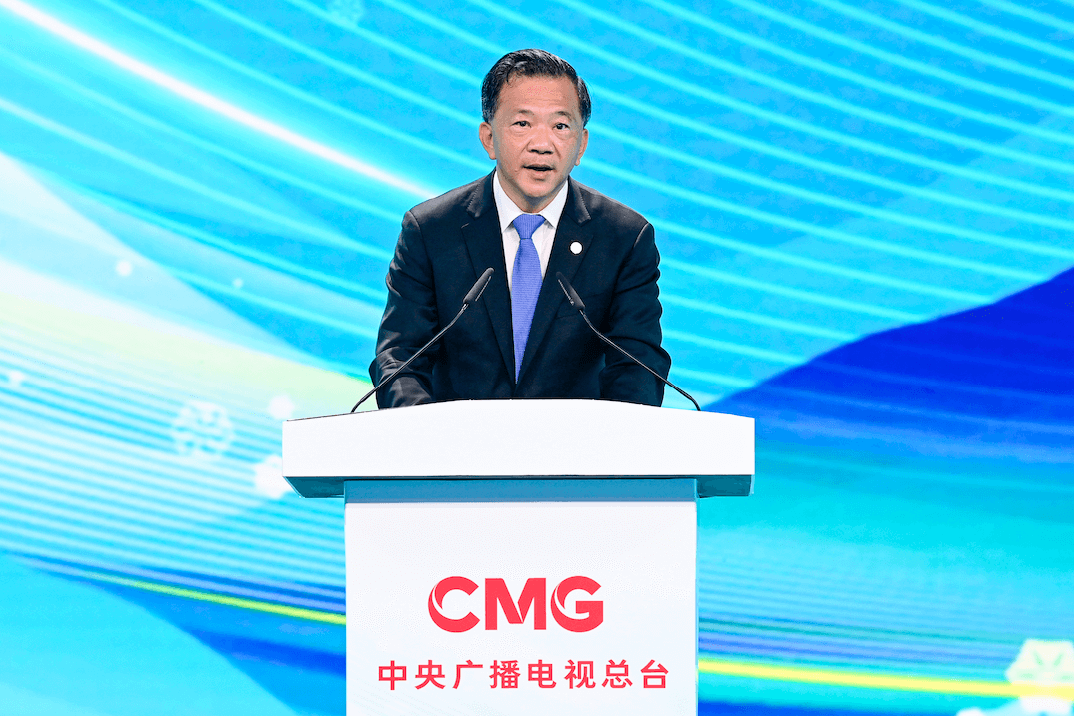 △中宣部副部长、中央广播电视总台台长兼总编辑慎海雄致辞