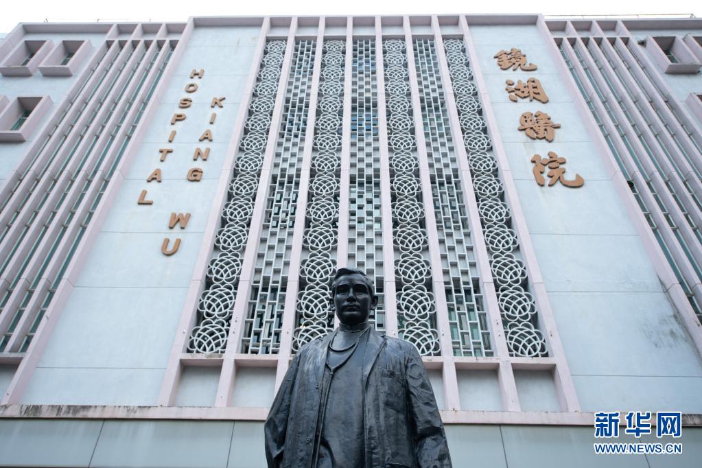 镜湖医院前的孙中山铜像(5月12日摄)。新华社记者 张金加 摄