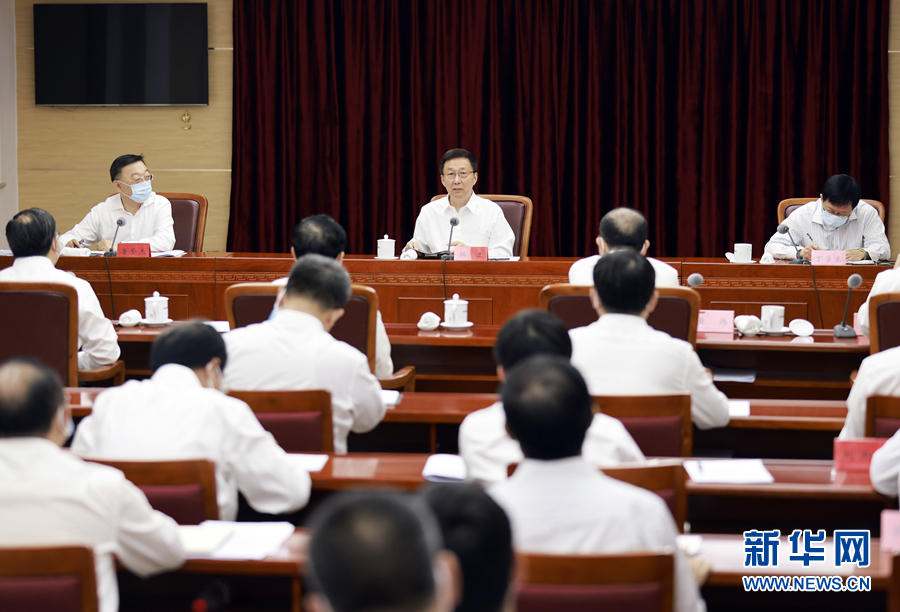 6月7日,中共中央政治局常委、国务院副总理韩正在国家粮食和物资储备局主持召开座谈会。 新华社记者 丁林 摄