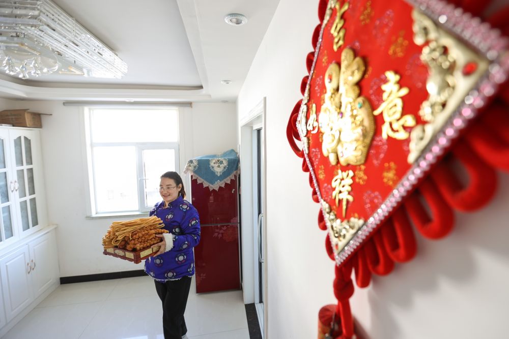 2021年2月5日,在青海省海东市平安区三合镇的易地搬迁集中安置区,翻身村村民李扎西卓玛在家中准备年货。